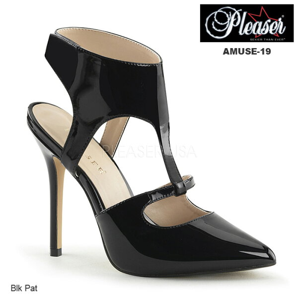 サンダル Pleaser(プリーザー) スリングバックサンダル ハイヒール エナメル黒 美脚 レディース靴 大きいサイズ 送料無料 AMUSE-19 AMU19/B◆取寄せ